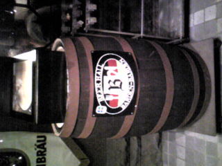 夜の部の居酒屋の看板と、お店の前にあったドイツ国旗の絵が描いてある樽です!